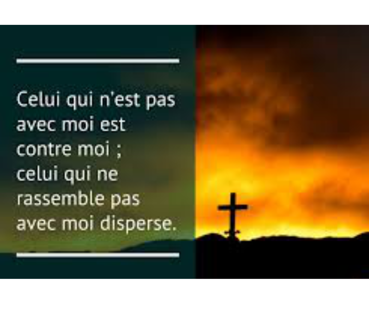Jésus nous invite à choisir clairement notre camp. Sommes-nous pour ou contre lui? Nous ne pouvons pas être neutres car ne pas choisir, c’est trahir. Celui qui n’aide pas positivement Jésus, travaille déjà à disperser le troupeau. Celui qui n’œuvre pour l’unité déchire la communauté. Nous ne devons pas nous taire ni faire semblant.